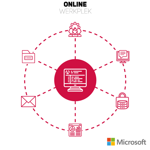 - Werken in een flexibele online werkruimte met alle vertrouwde Microsoft Office applicaties.