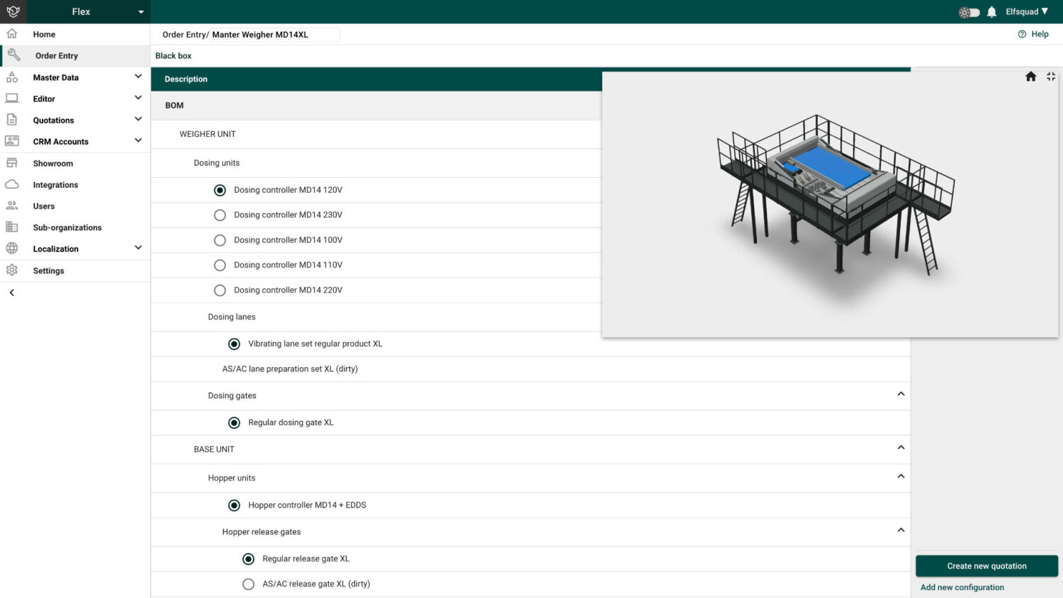 - Configuratie aanmaken met modulaire onderdelen Niet ieder product is volledig te configureren. In Elfsquad kun je dit verdelen in 'standaard' modules met klantspecifieke onderdelen die bewerkt kunnen worden door productie.